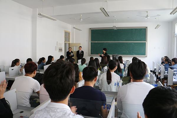 在一个半小时的课程里,Anton 向大家介绍了合肥元一希尔顿酒店的情况,着重向同学们讲解了酒店餐饮服务方面的英语专业知识,并与同学亲自示范,内容丰富多彩㊙️,教学形式活泼🚮,受到了同学们的一致欢迎。(王磊)