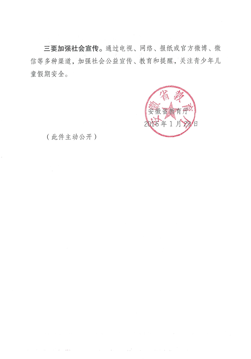 安徽省教育厅关于加强寒假春节期间学生安全教育的预警通知