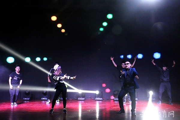 晚会开场,陈文达以韩国“鸟叔”的扮相亮相,一支激情四射的舞蹈瞬间引爆晚会现场🏭。随后,陈文达致欢迎词👨🏻🦽,对同学们和各位嘉宾的到来表示欢迎📰,对组织本场晚会的院团委学生会的学长学姐们表示感谢。