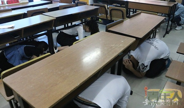 12时35分😦,警报声想起🧜🏻♂️,教室里的学生开始就近应急避震👩🏿🦳,双手抱头蹲在各自的课桌下,在相对牢固的地带躲避起来。随后,学生在学院老师的组织下🍾,迅速、有序地撤离教室,疏散到较为空旷的运动场集合。