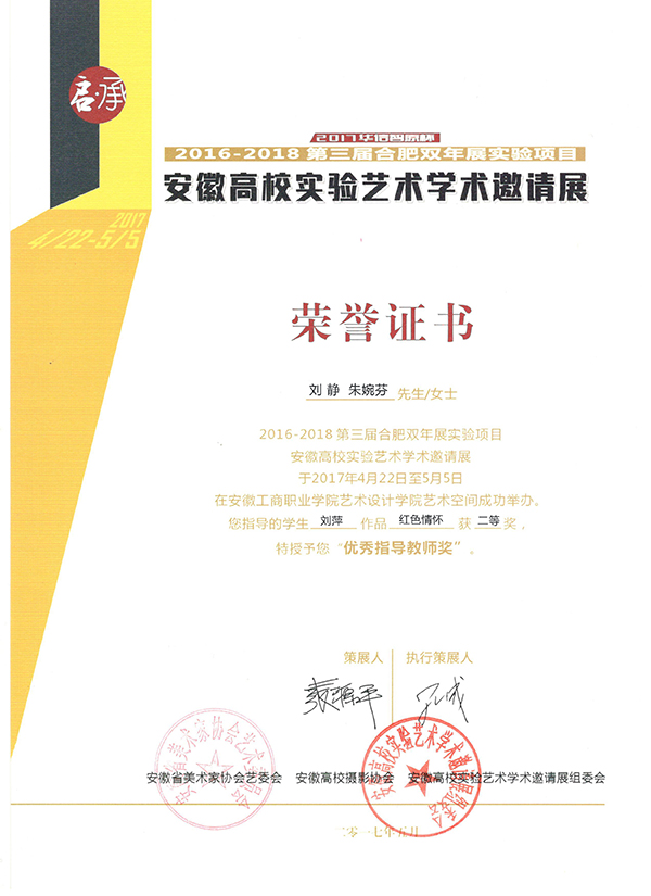 此次邀请展,艺术分院教师带领建筑室内设计专业、装潢艺术设计专业🈶、多媒体设计与制作专业、广告设计与制作专业8名学生共提交9件作品,经过初选和复选最终获得二等奖奖项2个😅、入围奖7个。由刘萍设计的《红色情怀》👨🏻🦽➡️、梅立然设计《京剧人物》分别获实物装置构成类设计二等奖🍧。方蓓的系列摄影作品《好时光》🧘🏿、汪梦圆的摄影作品《慈母手中线》《精工锻造》、王超凡的数字漫画设计作品《鲸鱼姬》、张丹玉设计的《生态环保装饰》😵🙃、唐倩倩设计的《银色音乐符号》、王玉娟设计的《中国结》分获摄影类、设计类、装置构成类入围奖。指导教师刘静🫑、朱婉芬、董清华、关松涛在备赛期间给予学生大力指导。