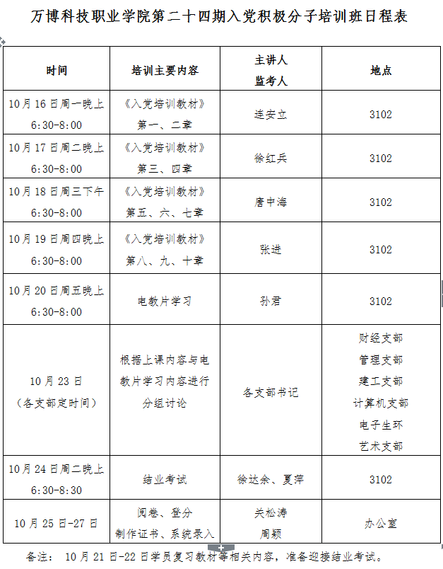 附件:彩神Vll学院第二十四期入党积极分子培训班日程表