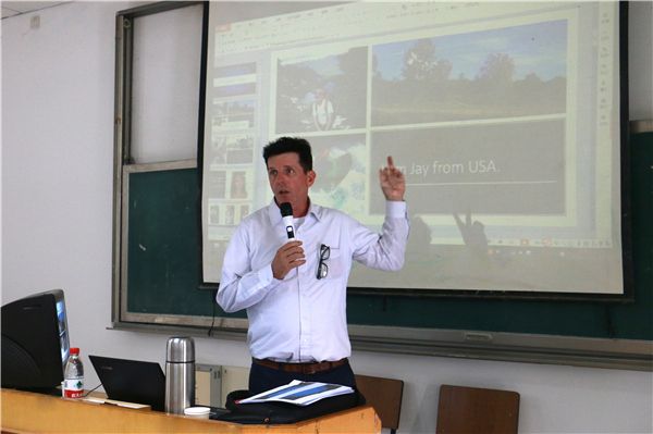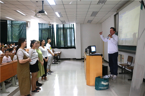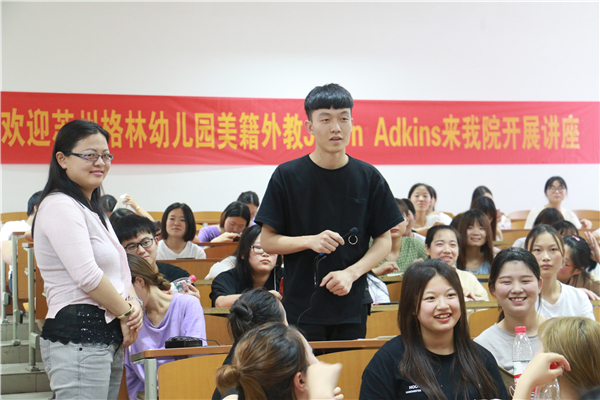 讲座中,Jason Adkins老师用纯正的美式英语和夸张的肢体语言♧,带动整个课堂的气氛十分活跃,他和同学们讲述了自己从科学家转变成为一名幼教老师的神奇之旅,告诉同学们对待幼教事业就是要浇注爱心,对于拥有不同问题的幼儿要采取不同的指导方式,对于幼儿所犯的错误不是一味的责怪,而是主动关注他与他进行交流。