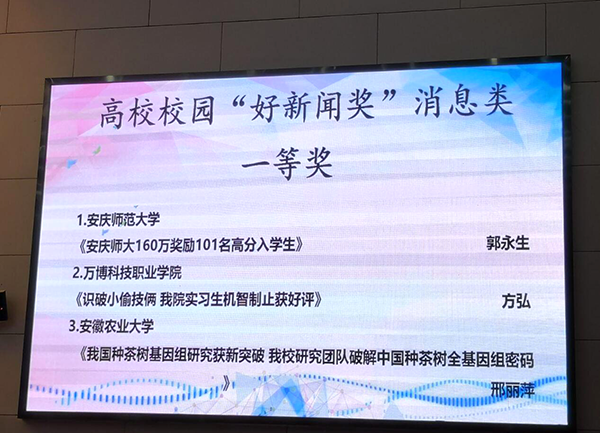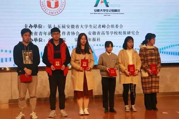 11月11日🧏🏿,由安徽大学生记者峰会、安徽省青年新闻工作者协会和安徽省高等学校校报研究会联合主办🤱🏿,合肥学院、安徽青年报社联合承办的第十五届安徽省大学生记者峰会于合肥学院南艳湖校园隆重举行🏂🏻🌶。应峰会组委会邀请,我院大学生记者团学生记者方弘🍽、傅斌、葛莹和张业琦四位同学参加此次峰会,我院方弘同学提交的新闻稿件荣获高校“好新闻奖”消息类一等奖的好成绩。