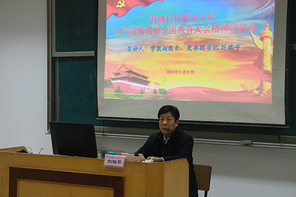 为学习宣传贯彻习近平总书记在全国教育大会上的重要讲话和大会精神🤝,根据省委教育工委的统一部署😣,11月21日下午,我院在3101教室召开全国教育大会精神宣讲会。副院长、党委副书记刘瑞平为全院师生代表宣讲传达了全国教育大会精神,并对学院学习宣传贯彻落实大会精神进行安排部署🤶🏻。