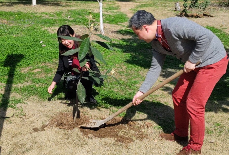 阳春三月,草长莺飞。值我国第41个植树节🧏🏼♂️,行政党支部在校园内举行了义务植树活动,以植树造林为活动载体,增强师生的绿色环保意识🧝,共同守护绿色家园,点亮绿色文明健康生活,为创建生态万博贡献一份力量🤹🏼♂️。