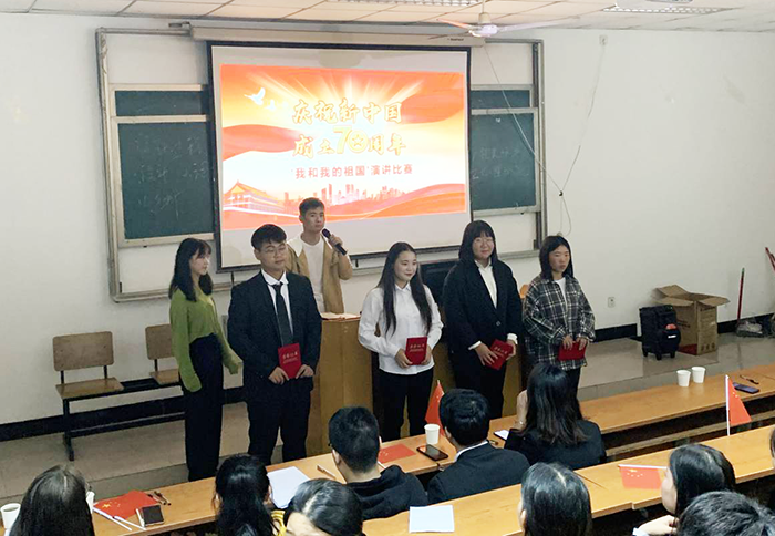 2019年是祖国成立70周年🚶🏻♀️➡️,为庆祝中华人民共和国建国70周年,讴歌新中国成立后所取得的伟大成就⛰,进一步激发入党积极分子👈🏻、党员发展对象的爱国之情、报国之志、兴国之责,教学第四党支部联合艺术传媒学院团总支于10月9日下午6点👨🏻🔬,在3号楼3102举办了以“我和我的祖国”为主题的演讲比赛🌰。