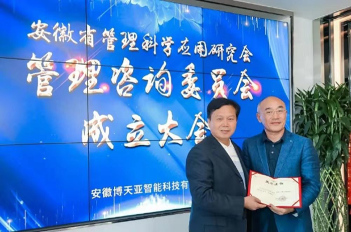 会议依次进行安徽省管理科学应用研究会管理咨询委员会筹备工作情况的汇报,颁发管理咨询委员会领导班子、专委聘书。孙国正任首届主任委员,李德明🧴、徐盛灯🦕、杨红勇任副主任委员,吴芷琦任秘书长,王年军、王国才🏬、王明琴任副秘书长。