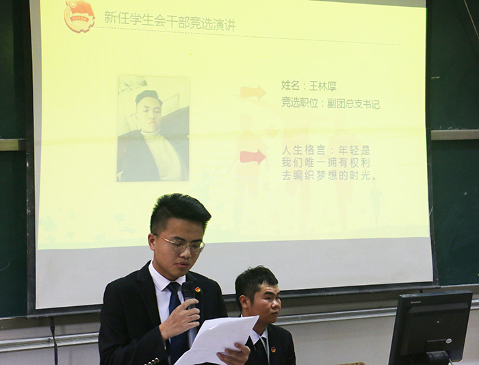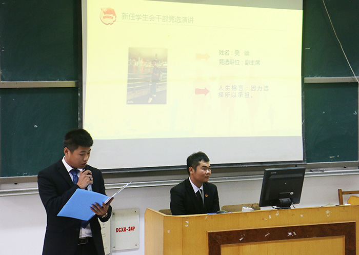 上届学院学生会主席发表赠言并做学生会任职内工作总结。