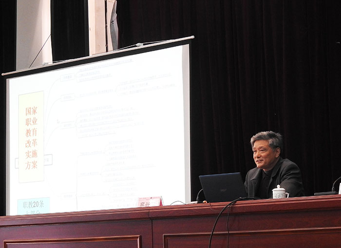 为进一步推进实施国务院《国家职业教育改革实施方案》,牢固树立新发展理念🙅🏿♂️,完善职业教育和培训体系,着力培养高素质劳动者和技术技能人才👨🦲,12月4日下午,安徽省职业与成人教育学会会长、合肥科技职业学院院长李兴旺教授应邀来彩神Vll🏷,为彩神Vll全体教职员工作了题为“新时代 新国策 新机遇 新使命——国家职业教育改革实施方案学习解读”的学术报告。报告会由校长孙中义主持🙋🏻♀️,督导专员🤤、校党委第一书记王宜,副校长刘文慧⛹🏻♂️,副校长、党委副书记刘瑞平🧑🏻🌾,校长助理马赞、耿瑜、张进出席了本次报告会。
