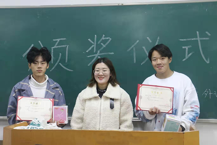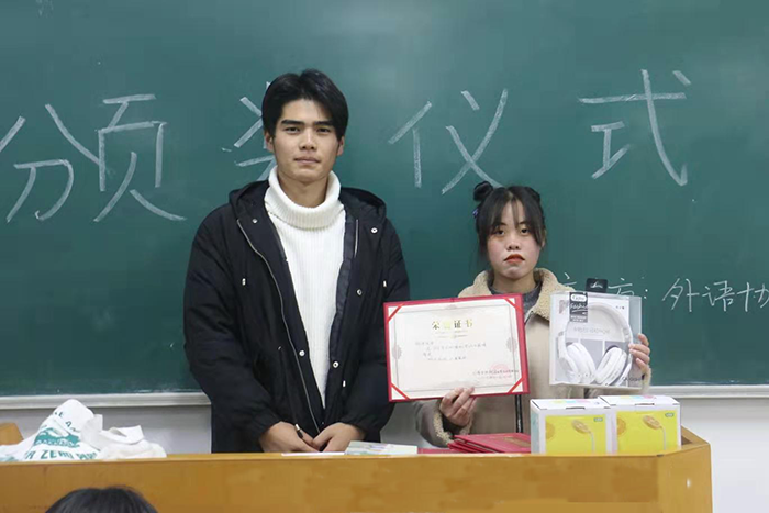 值得一提的是,为鼓励同学们积极学习英语🧜🏻♀️👨🏼💼,模拟考后,主办方还根据考分高低设置了一、二、三等奖,并对获奖的同学进行了表彰🈁📭。其中☠️😤,许珊珊同学荣获一等奖🙍🏻;杨洋、盛成志分获二等奖✌🏼;李妍、段珊珊、茹晓雨同学分获三等奖。