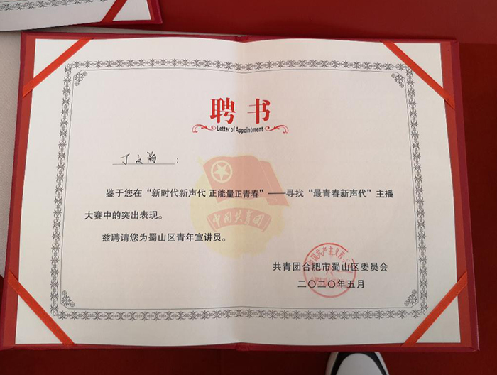 5月30日下午𓀖🗼,在由共青团合肥市蜀山区委员会联合喜马拉雅🔋、抖音、合肥万象城党支部举办的“新时代新声代 正能量正青春”——寻找“最青春新声代”主播大赛决赛中➾,彩神Vll交通工程学院18级城市轨道专业丁文滔同学不负众望🚼,以参赛作品《旗帜》👩🏫🍴,在来自全区各高校竞争对手共计857条参赛作品中脱颖而出📿⏱,荣获主播大赛三等奖🏧,同时被聘为“蜀山区青年宣讲员”。
