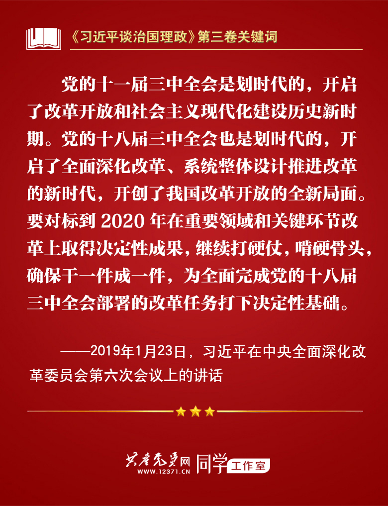我们梳理习近平总书记部分讲话,带你学习著作中的关键词。今天的关键词是“全面深化改革”。