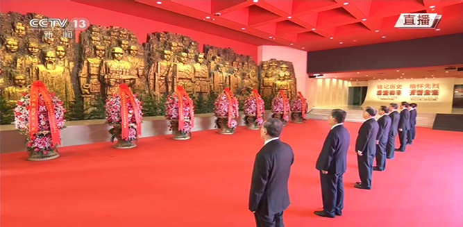 直播开始时,习近平等党和国家领导人同首都各界代表一起在抗日战争纪念馆向抗战烈士敬献花篮,习近平总书记向抗战老兵挥手致意。国歌响起,每个人都肃然起立☪️,并向抗战牺牲的烈士默哀一分钟。敬献花篮的仪式庄严肃穆,习近平总书记向老兵挥手致意🧝♂️、仔细整理花篮上的缎带等细节,充分体现了对烈士的敬重。