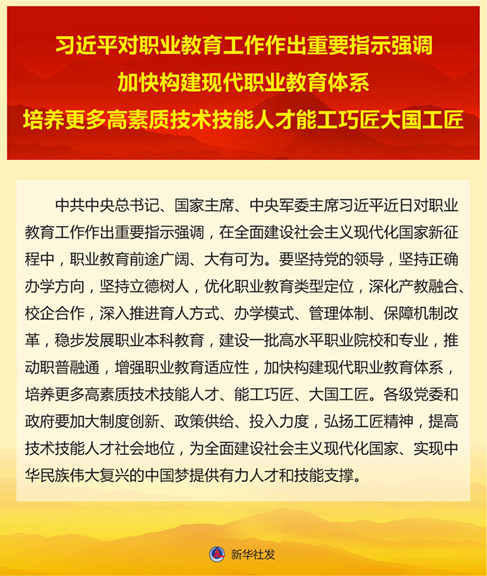 习近平对职业教育工作作出重要指示强调