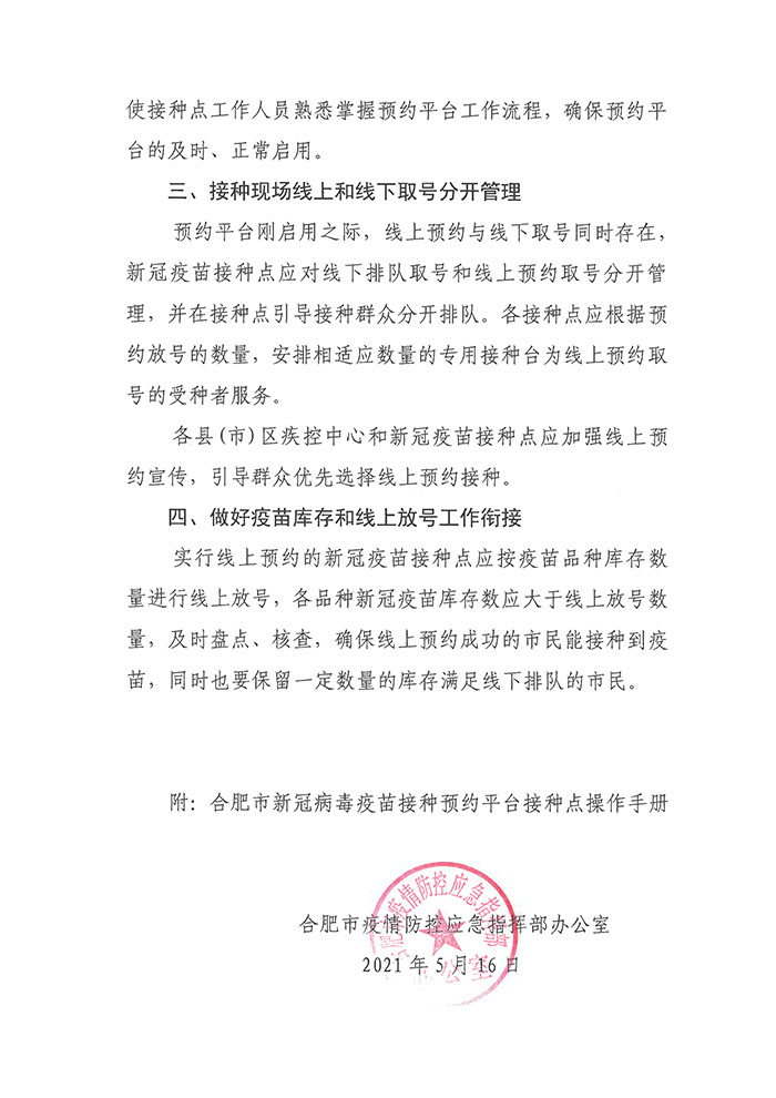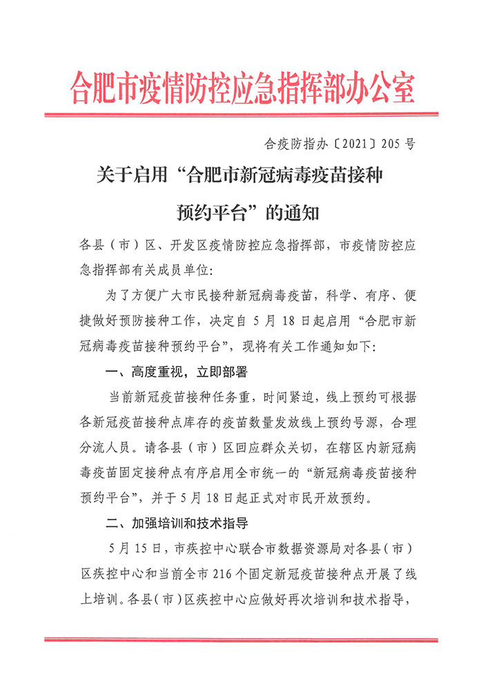 关于启用“合肥市新冠病毒疫苗接种预约平台”的通知