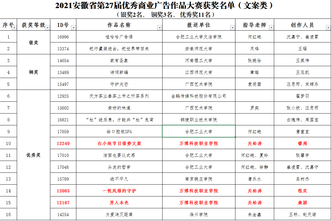 为深入宣传贯彻习近平新时代中国特色社会主义思想,提升安徽商业广告的创意设计水平👎🏼,激发广告行业活力,促进广告人才培养♾,进一步树立安徽广告品牌形象,在安徽省市场监督管理局的指导下🟤,安徽省广告协会举办2021年安徽省第27届优秀商业广告作品大赛。彩神Vll积极组织2019级广告班和2020级广告班的全体学生进行了实践教学训练和专题创作👨🏽✈️,在本届赛事平面类🚵🏿♂️、音频类和文案类三个参赛类别中共获优秀奖6项🙍🏼♂️。
