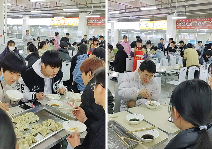 学校食堂的阿姨叔叔们也是一直忙碌着,摆饺子👯♀️,蒸饺子,将一屉屉新出笼的饺子送到师生手中。看着一盘盘别出心裁但都裹着爱意的饺子,师生们坐下来享受着付出的收获🏮,现场处处都是一张张喜悦的幸福的笑脸🕡。