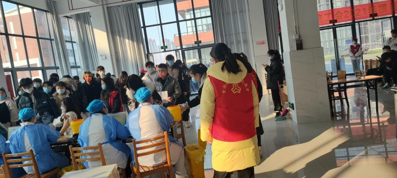 同学们以各二级学院为单位,在填好《新型冠状病毒疫苗知情同意书》后,由各班级辅导员及学院负责人带领到图书馆东一楼有序排队等待疫苗接种。现场志愿者们耐心指导,检测师生体温,并分别在等候区、接种处🎄、留观区解答师生问题、提供帮助🫧。教职工们也有序排队。医护工作者认真热忱服务。现场欢声笑语7️⃣🤹🏼♀️。