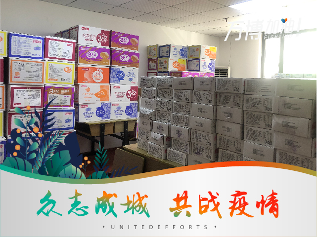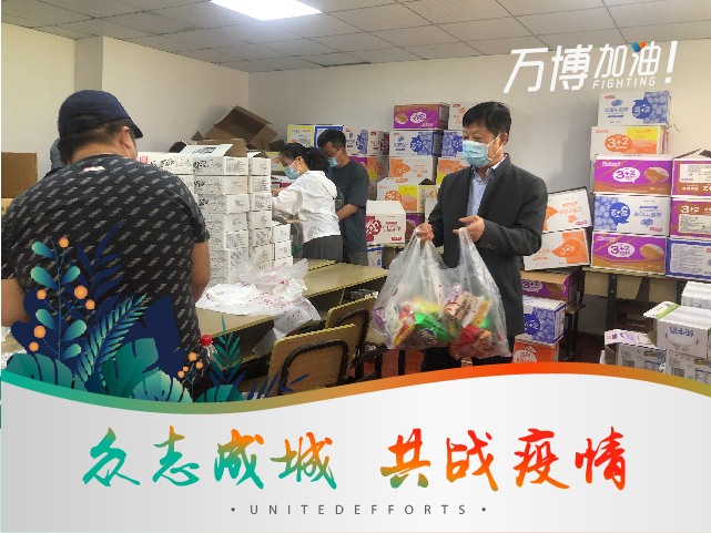 经过两天的努力,这批装有防疫物资和爱心礼品的暖心包终于分拣完毕。