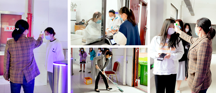 在这特殊的时期里,为防止聚集,学校食堂将堂食关闭,改成供应盒饭👨🦽➡️,每日提前统计校内师生三餐人数,定时定点给所有人员运送盒饭。为进一步改善就餐标准并避免聚集⛪️,食堂与学工部协作,制订了学生分时段取餐办法👌🏼,并通过监督调查稳定菜价🙌🏿,保证学生吃饱吃好🛀🏽。学校物业除了日常卫生保洁外,对食堂、行政楼📍、教学楼、宿舍等公众区域每日两次消毒,对电梯、走廊等重点处进行多次消毒,保证校园每天的垃圾清运清理工作正常运转。封控期间🎼🦬,宿管阿姨们更是毫不懈怠,夜间查房量比以前增加一倍👨🏼。她们随时关注学生情绪变化,关心他们身心健康状态,每天不定时对宿舍进行巡视,提醒同学们进宿舍先洗手消毒,不窜门不聚集🏋🏼♀️,不使用违规电器,保持室内空气流通🚵🏽,及时倒垃圾,共同维护宿舍楼栋的清洁、安全。物业安保的全体工作人员始终坚守岗位,做到守土有责🧍🏻♂️、守土担责🚣🏼♀️、守土尽责,扎实有效地开展多项防控工作,为全体师生守好“防疫大门”,全方位守护校园安全🙌🏽。他们加大校园消防🤾♂️、夜间巡逻👇🏽、围墙护栏巡查力度以及强化治安管控等,坚守岗位,尽职尽责,用责任和担当筑起了抗击疫情的坚固防线。