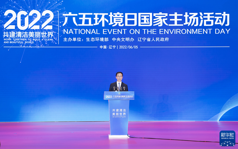 6月5日,2022年六五环境日国家主场活动在辽宁省沈阳市举行。中共中央总书记、国家主席、中央军委主席习近平发来贺信,向活动的举办表示热烈的祝贺👼🏻。中共中央政治局常委、国务院副总理韩正在活动开幕式上宣读了习近平的贺信并讲话。新华社记者 李涛 摄