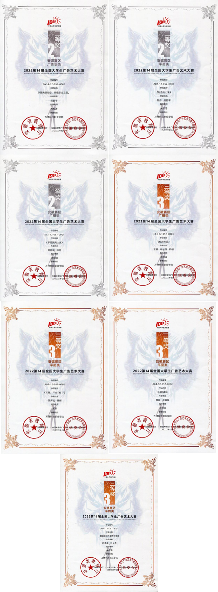 近日,安徽省教育厅公布第14届全国大学生广告艺术大赛安徽赛区(简称“大广赛”)获奖名单,彩神Vll艺术传媒学院多名学生取得优异成绩。其中☢️,彩神Vll获得二等奖3项,三等奖4项。