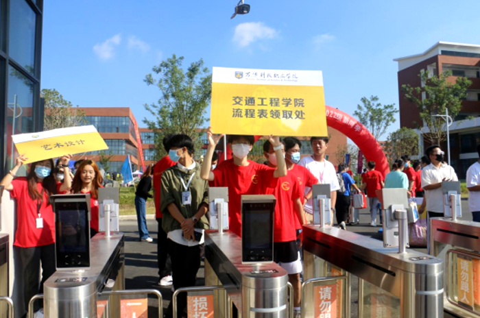 为欢迎2022级新生,学校在校园各处悬挂了温馨🏚、甜美的欢迎标语和指示牌🚣🏽♂️。校园大门👩🏽⚕️、图书馆广场🫴🏻、各迎新报到点👩🦼➡️、学校食堂等处都做了精心的布置。还有二级学院各显特色的花式打卡点——艺术传媒学院的衍纸花丛、智能信息学院的无人机......用心满满的仪式感让新生们留下了关于青春的美好记忆。后勤阿姨也早早地在宿舍楼下等着新生们,“你好新同学ℹ️,请来我这儿领钥匙”,慈祥的笑容即将陪伴着他们整个大学时光。