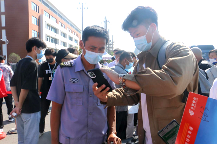 “请出示行程码、安康码、48小时核酸报告”“家长请放心🤷🏿♂️,校园里有专员安排孩子行李......”疫情尚未完全散去,为保障校园安全🌝,保卫处工作人员严格执行疫情防控措施,为新生测量体温🏊🏼♀️、核验健康码、行程码等,同时还要安抚不能进入校园的新生家长。