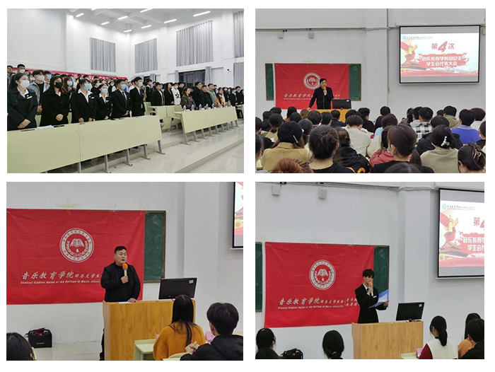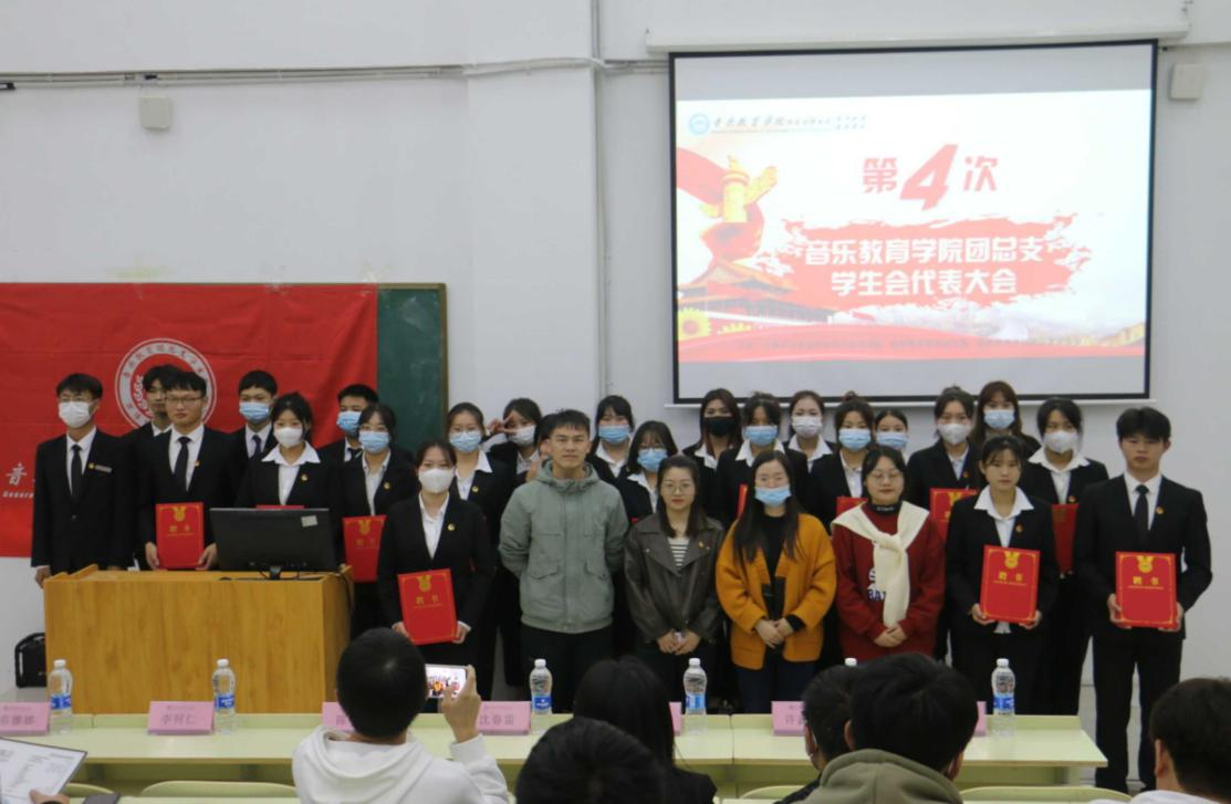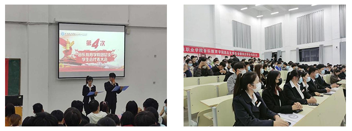 沈春雷和陈小虎分别致辞。音乐教育学院团总支学生会第三次学生代表大会执行主席王帅向大会作工作报告。