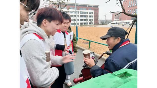 食堂入口,志愿者们将准备好的姜茶有序送给用餐的老师及同学们😱,提醒大家在寒冷的天气里注意保暖🚈,预防感冒。校园路上,志愿者们拿着一个个暖瓶,为打扫校园卫生的物业的阿姨👨🏼🌾🎬、叔叔们送上一杯杯热姜茶👤,为他们驱散身体的寒冷,让他们在寒冷的冬日里感受到学校的温暖和学生们的心意。