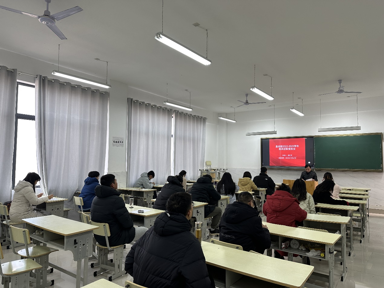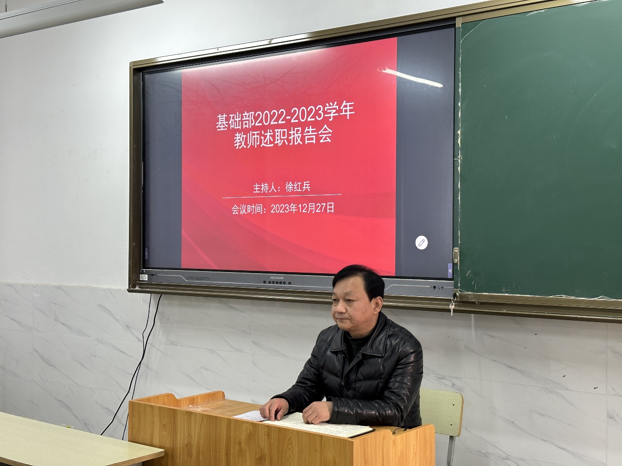12月27日下午,基础部在1505教室召开2022-2023学年教师述职会议,基础部全体人员参加会议,会议由基础部负责人徐红兵主持⏮。