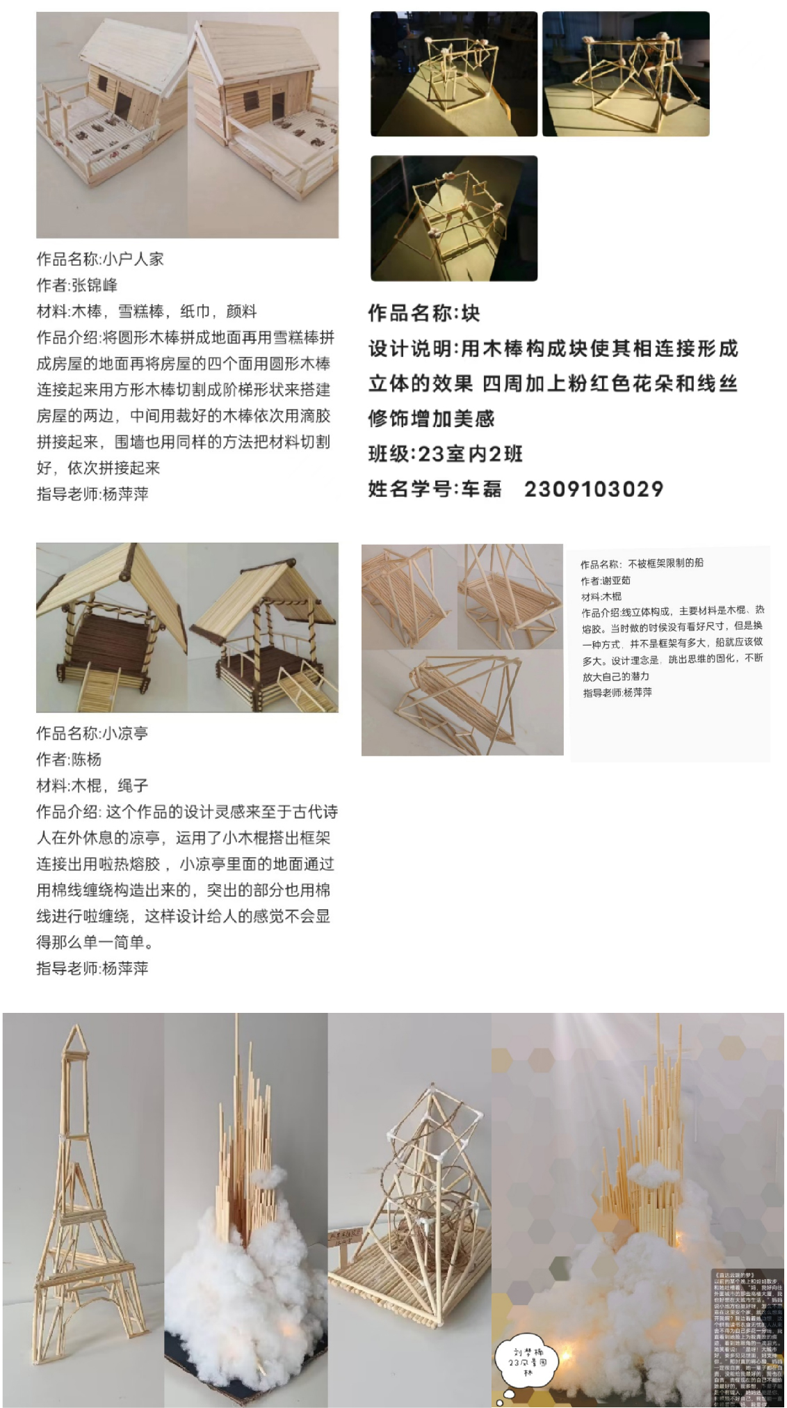 本次作品展凝聚了指导老师的心血💉。它有利于帮助同学们掌握立体构成的思维方法,提高实践操作与动手能力🪯,完善立体构成知识素养🔔,为学生们后续专业课程的学习和深造奠定了坚实的基础。