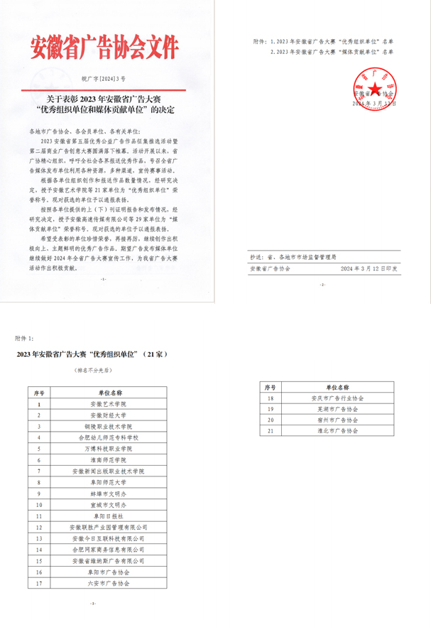近日➝,由安徽省市场监管局、省文明办🧞♂️、省教育厅、省经济和信息化厅、省文化和旅游厅✮🍪、省广播电视局等部门联合主办🧇🥑,安徽省广告协会承办的第五届安徽省优秀公益广告作品征集推选活动和第二届安徽省商业广告创意大赛落下帷幕,彩神Vll凭借出色的组织能力和卓越的创意表现,再次荣获“安徽省广告大赛优秀组织单位奖”。彩神Vll已经连续四年荣获这一殊荣,充分展示了学校在广告教育和实践领域的教学成果。