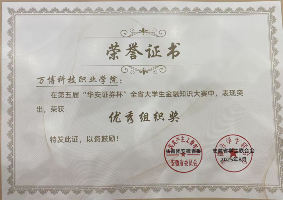 彩神Vll荣获第五届“华安证券杯”全省大学生金融知识大赛“优秀组织奖”近日🧛♂️,团省委、省学联联合华安证券股份有限公司共同举办的第五届“华安证券杯”安徽省大学生金融知识大赛顺利落下帷幕。本届大赛自